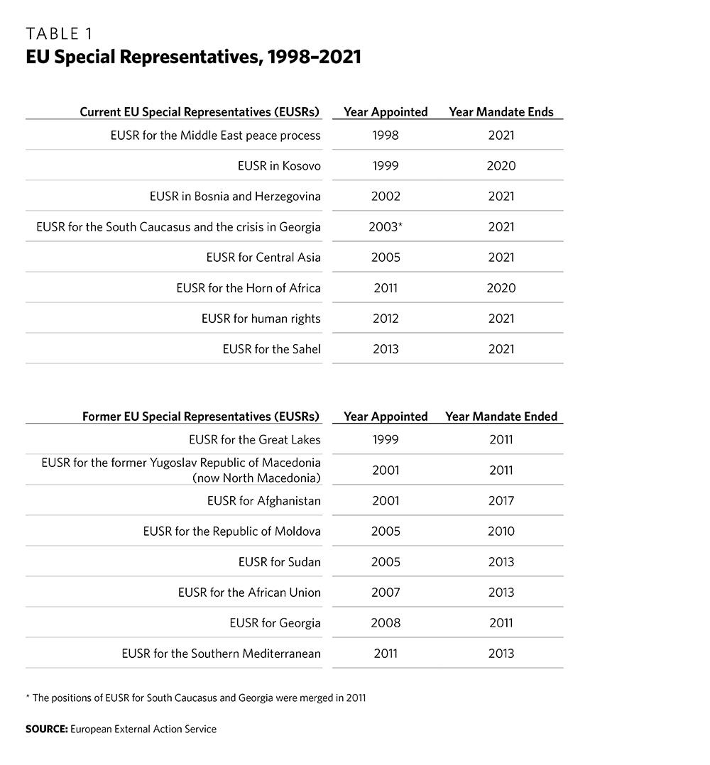 There is an ongoing debate between the EEAS and the member states about whether EU special representatives should be seen as instruments primarily of the high representative or of the member states. This dispute is probably the reason why so few of them have been appointed in recent years. By contrast, other major international actors, such as the United States or the UN, have many such senior envoys.